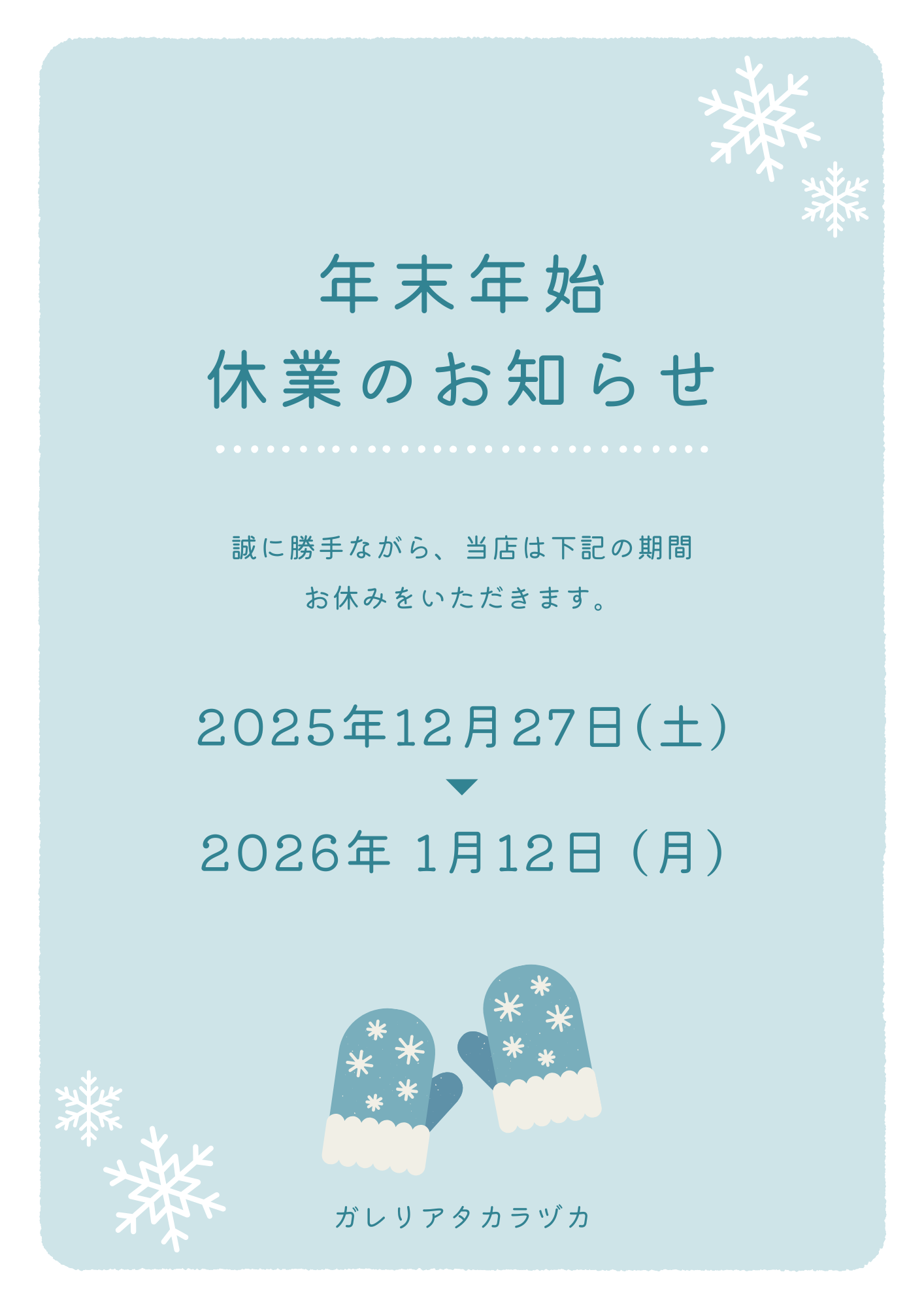 »年末年始のご案内